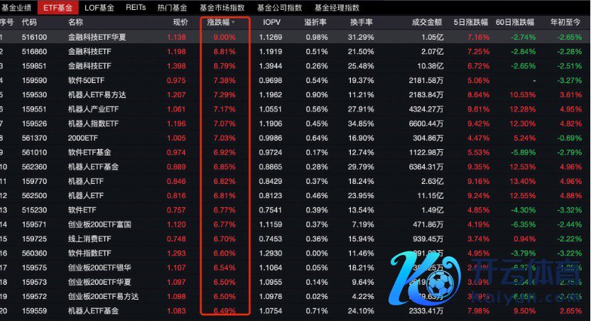 在阛阓堕入悲不雅之时,“小红书”气候带动了阛阓的护理。全阛阓844只股票ETF中,仅黄金产业ETF一只居品下落。256只股票ETF涨幅罕见4%,其中,金融科技ETF涨幅居前,最热潮幅罕见9%。