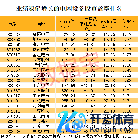 估值水每每面,欺压1月15日收盘,上述30家功绩稳健增长的电网开垦公司中,10家公司鼎新市盈率低于20倍,如金杯电工、炬华科技、海兴电力、球冠电缆、王冠电气等。