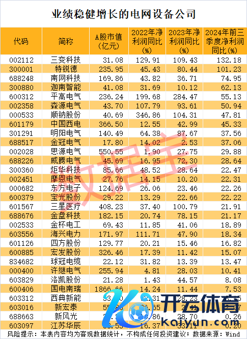 从畴昔几年的功绩数据来看,数据宝统计,2022年、2023年、2024年前三季度净利润均实现增长的电网开垦公司有30家。这些公司畴昔增长后劲一样获机构看好,如想源电气,公司一直聚焦于输配电行业,也在加大前瞻性工夫进入,如柔性直流输电、新动力、储能、物联网、汽车电子等,机构一致预测其今后两年净利润增速辞别为24.36%、21.54%。