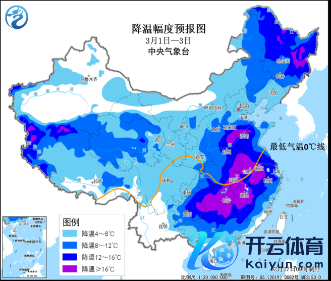 受冷空气和雨雪影响,各地气温也将赫然着落。孙倩倩示意,由于前期基础气温高,中东部多地将出现短时间内的利弊降温,隔天如换季,降温强度可达寒潮级别。3日前后,最低气温0℃线将南压到江汉至沿淮河一带。寒潮事后,江南中北部偏激以北大部地区气温将由前期偏高转为偏低或接近长年同时。